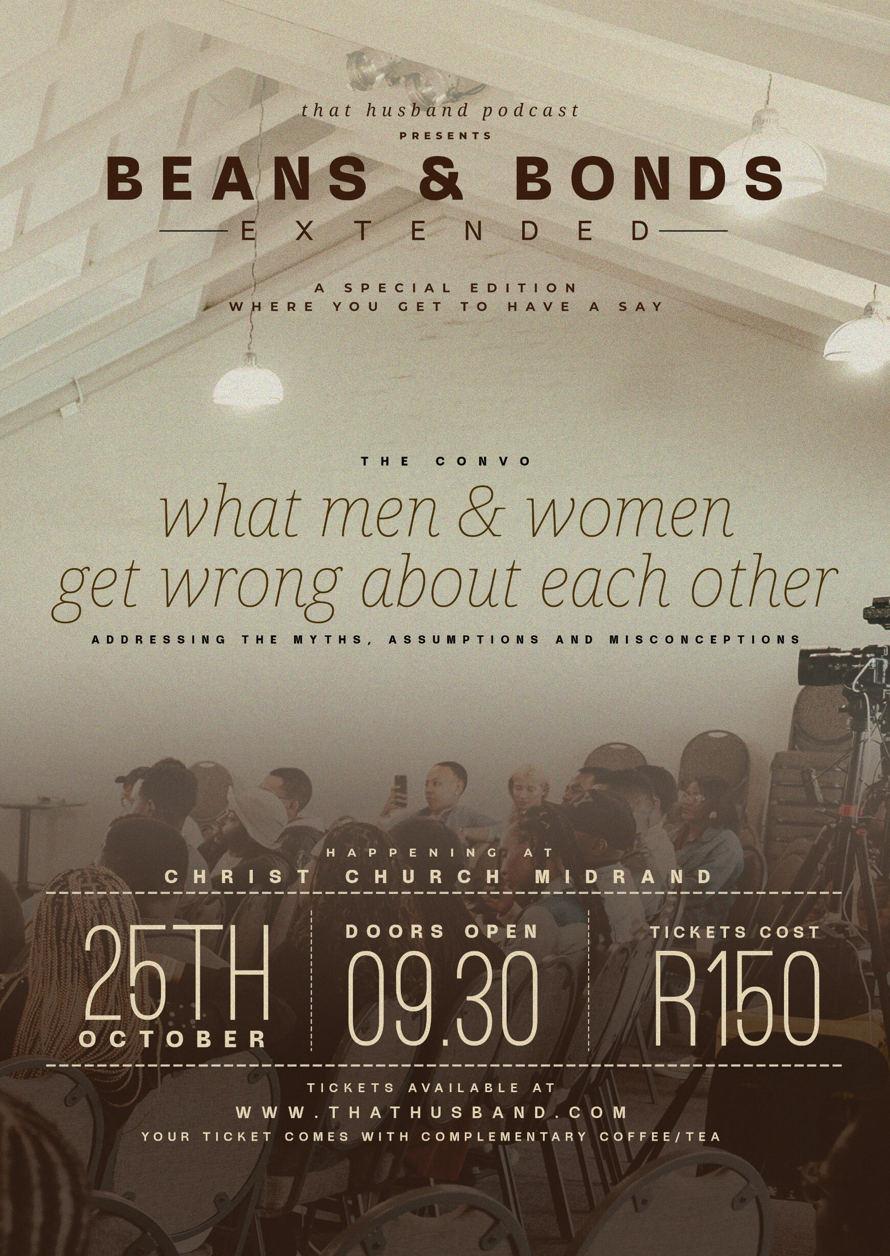Beans & Bonds is back and this month Blaque Nubon takes the moderator’s chair for an unfiltered conversation where the YOU our audience take center stage. Together, we’ll dive into the myths, assumptions, and misconceptions that fuel the great divide between men and women. The things we often miss, the truths we long to be heard, and the lessons we need to grow. With comedian Linde Sibanda on hand to keep the room light, you definitely don’t want to miss out!